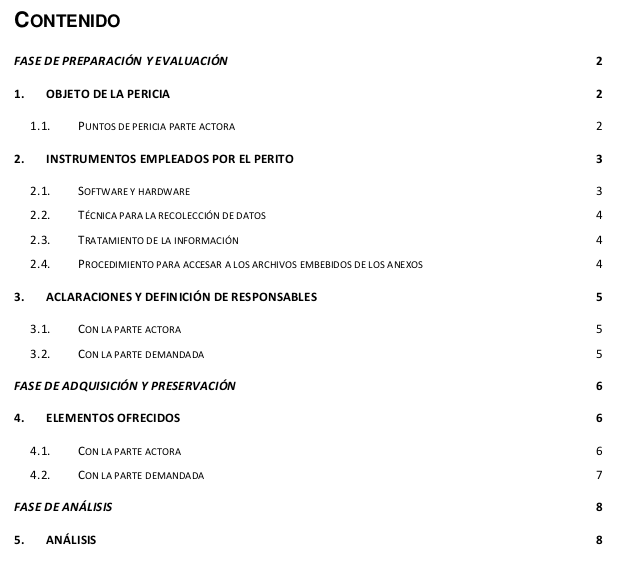 Contenido del informe